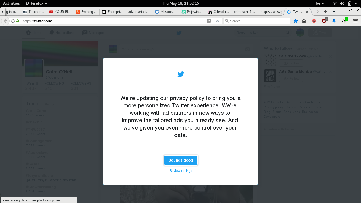 Adversarial interfaces is research in progress. This sites first itteration exists to mark a point at the finalisation of a masters degree in media design and communication by Colm O'Neill.